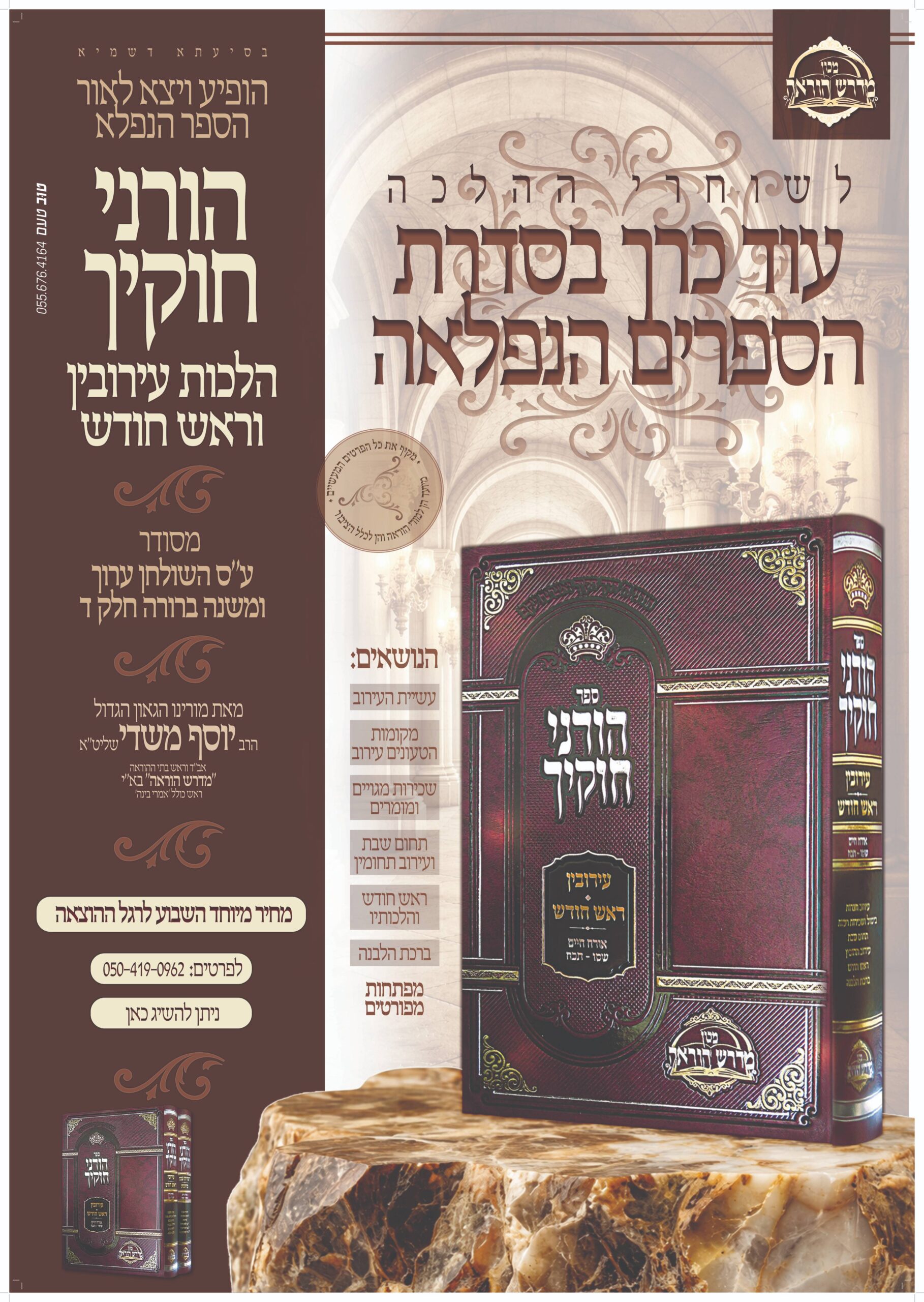 הלכות עירובין וראש חודש מאת מורינו הגאון הגדול הרב יוסף משדי שליט"א אב"ד וראש בתי הוראה "מדרש הוראה"