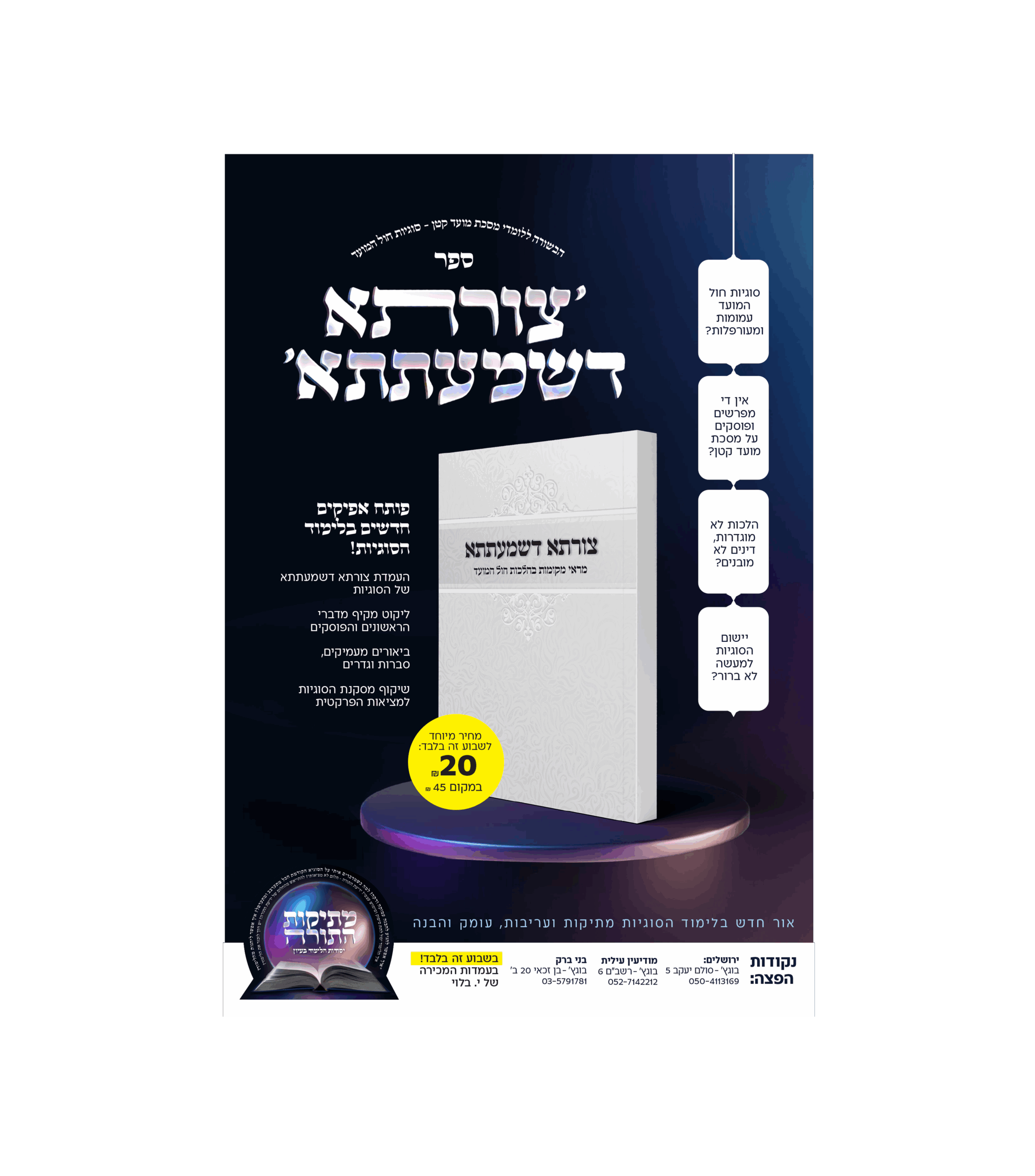 צורתא דשמעתתא – מראי מקומות בהלכות חול המועד – אור חדש בלימוד הסוגיות מתיקות ועריבות, עומק והבנה
